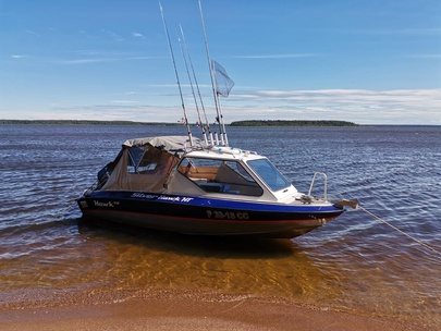 Катер приобретён новым в Санкт‑Петербурге. Один владелец. Использовался исключительно в летний период (двухнедельный отпуск). Хранение – только в сухом помещении. Состояние корпуса, моторов и оборудования отличное, катер полностью обслужен и укомплектован. Продаётся в связи с возрастом владельца: эксплуатация катера больше не представляет возможности.