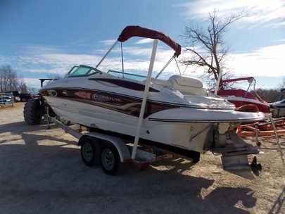 The Crownline 240 EXcitement comes is the one of the next generation sport boats with its Fast-Tab hull design and an amazing boatload of standard equipment. Up front is a hidden stainless steel bow ladder, a drainable cooler and flush-fit closeout door. The helm is fitted with a Faria gauge instrument panel, including an engine hour meter, a tilt steering wheel, Tri-Tech flip-up buckets and 12V receptacle. And that's just for starters. The aft bench seat converts to a cockpit sun bed without the need for filler cushions. The extended swim platform comes with a four-step boarding ladder. This is well powered and propelled by a 5.7 Gi Volvo and SX drive. A propulsion package like this makes it powerful, efficient, and easy to maneuver. Now, you will be happy to know that this one only has 115 hours on it! That is hard to beat. This model has been one I've come to really enjoy when selling because it makes a lot of sense in terms of having so many cool features when you are on the water. A lot of things may sound great in a showroom, but how often are those things enjoyed or easily used when it's well over 100 degrees out there with no wind? A 240 Ex, has the cool and fun factor all in one. Things like the bow flip up or down armrests are greater to have when cruising around. It has a wind block door when it's too cool to block the air from up there. The cockpit is laid out so nicely, offering in floor storage that runs far forward. It is equipped with a pump out head too, making your on water necessities much easier to work out. The "L" shape lounge, tandem captain chairs with flip up bolsters, Cd stereo, cooler storage, refreshment center, snap out carpet, snap on bow and cockpit cover, bimini shade top, awesome rear converting sun pad with pass through transom and extended swim platform are all great reasons why this one should be yours!