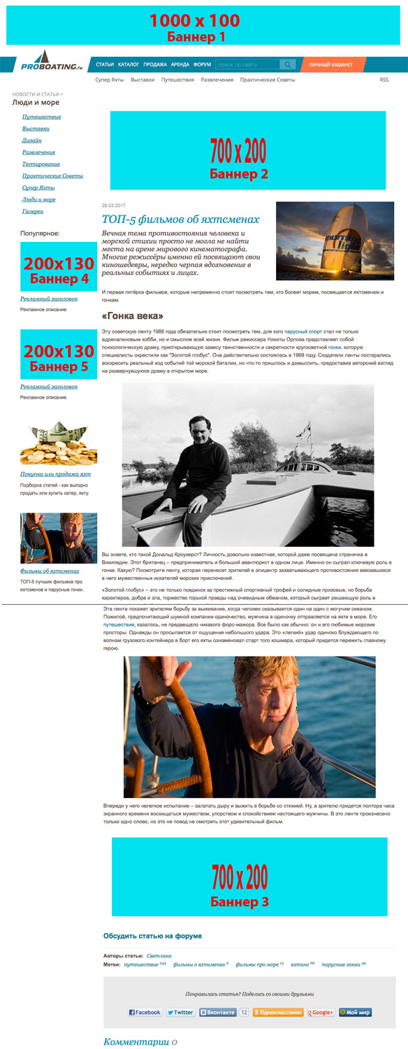 Тематика рекламируемых товаров должна быть близкой к яхтам, мы не разместим баннеры, не соответствующие законодательству, содержащие раздражающую анимацию, грамматические и орфографические ошибки.