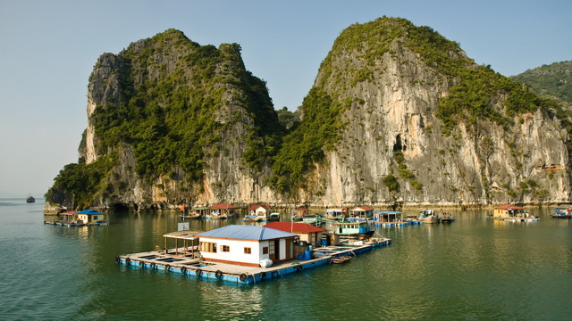 Путешествуя по бухте Халонг, интересно полюбоваться и на плавучие рыбацкие деревни, сооружённые на плотах. Люди, обитающие в этой бухте Вьетнама, живут не на самих островах, а в домиках из бамбука, образующих целые плавучие деревни.