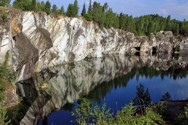 В живописной Карелии, в небольшом поселке Рускеала, расположен удивительный мраморный каньон, растянувшийся на целых 500 метров в длину и имеющий ширину около 100 метров. Его глубина в некоторых местах достигает 50 метров.
